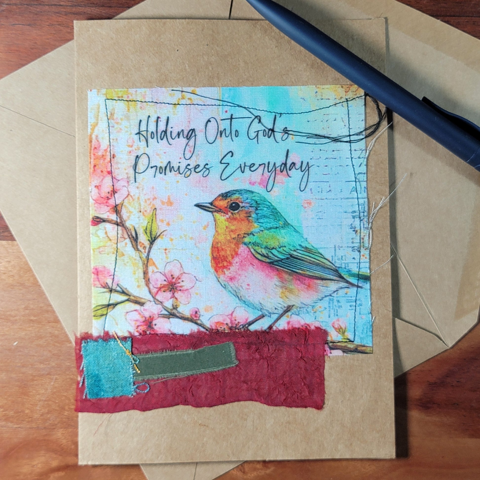 Enjoy this handmade fabric art card ready for your words! Blank Inside.