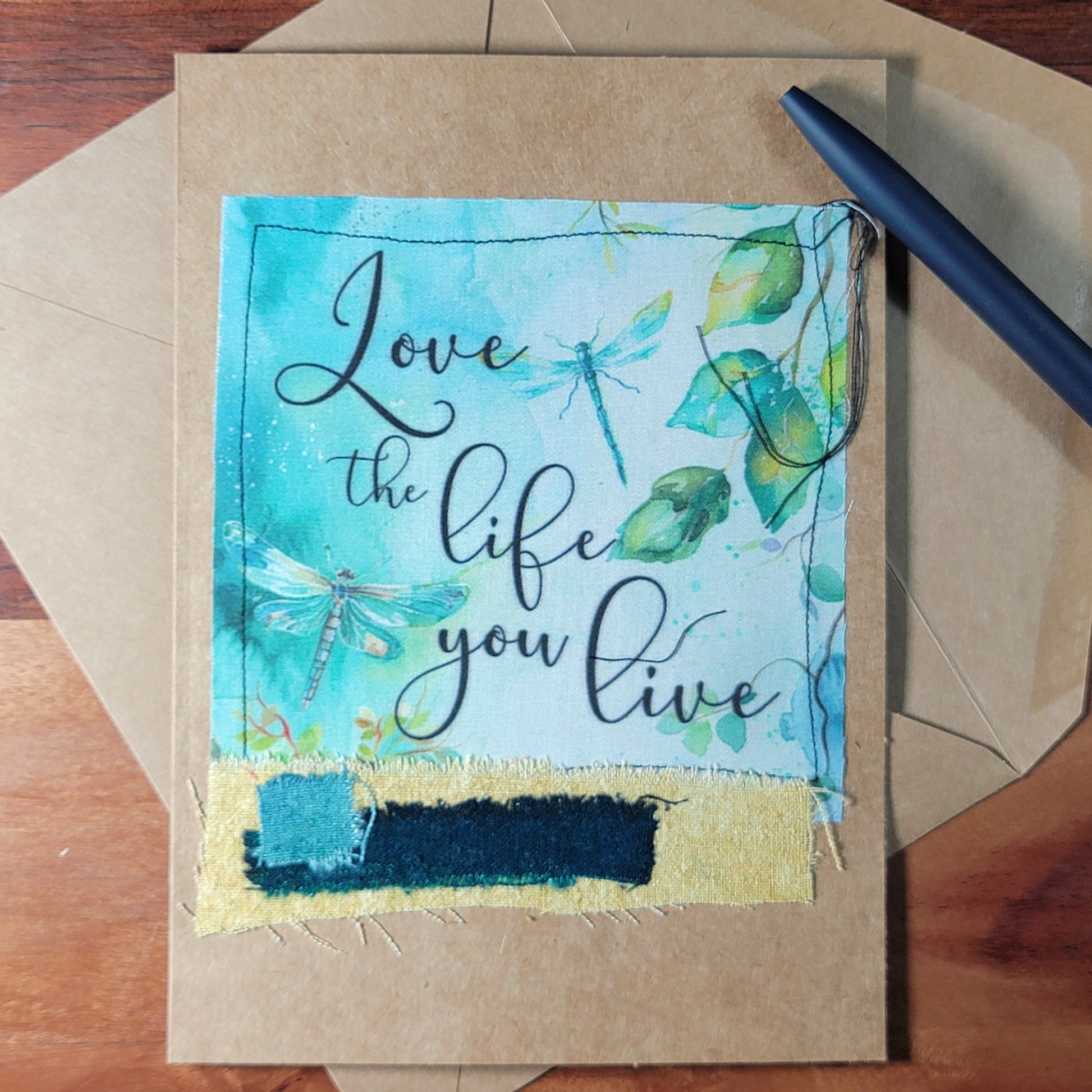 Enjoy this handmade fabric art card ready for your words! Blank Inside.