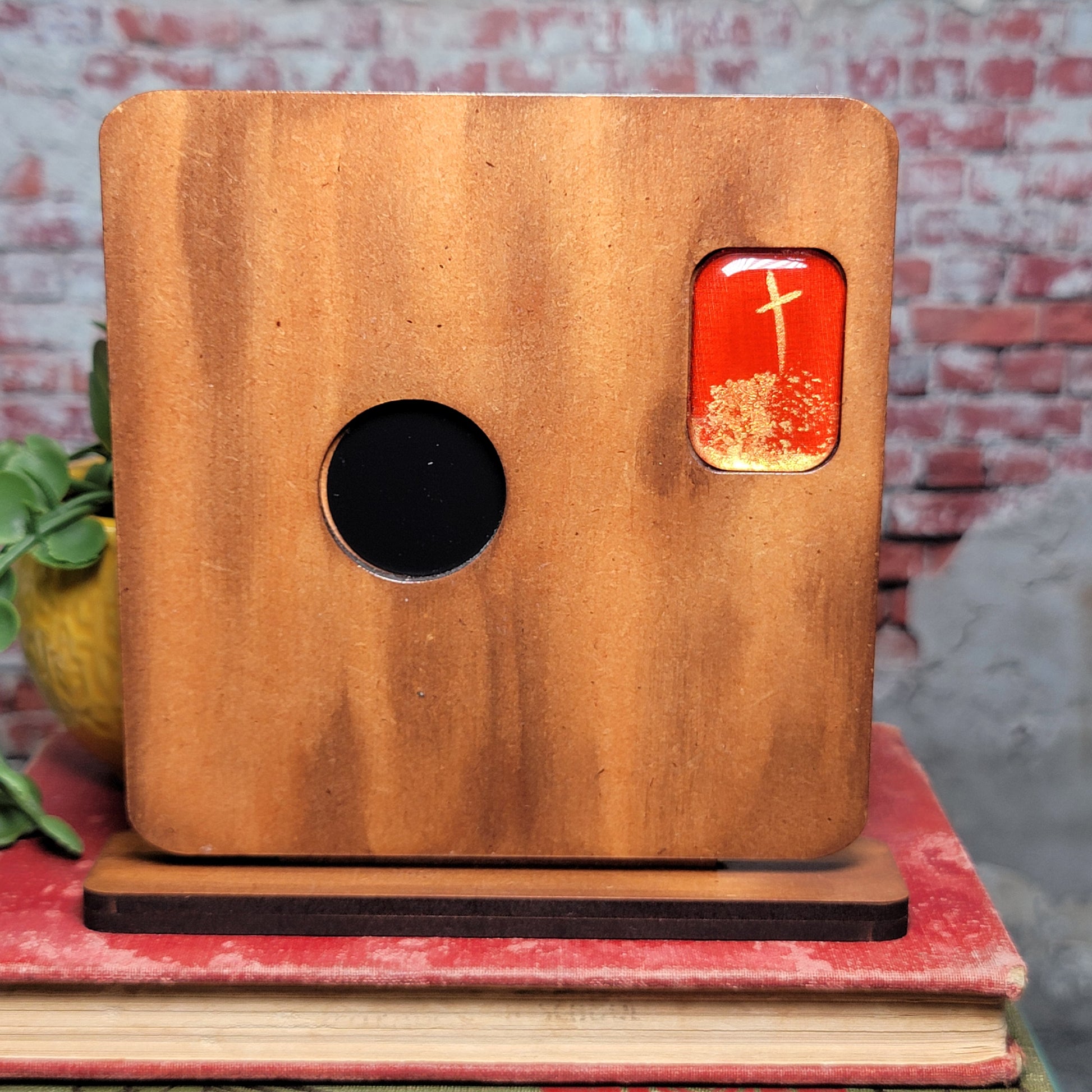 Introducing my custom-created Wood Magnet Frame with a hand-dyed silk gem with a gold metallic cross painted inside it. The frame becomes the ultimate solution for displaying your cherished magnets with style and flexibility. This high-quality frame, available in sleek brown and black finishes, features a unique design that allows you to easily interchange the magnets, making it perfect for showcasing different designs or messages.