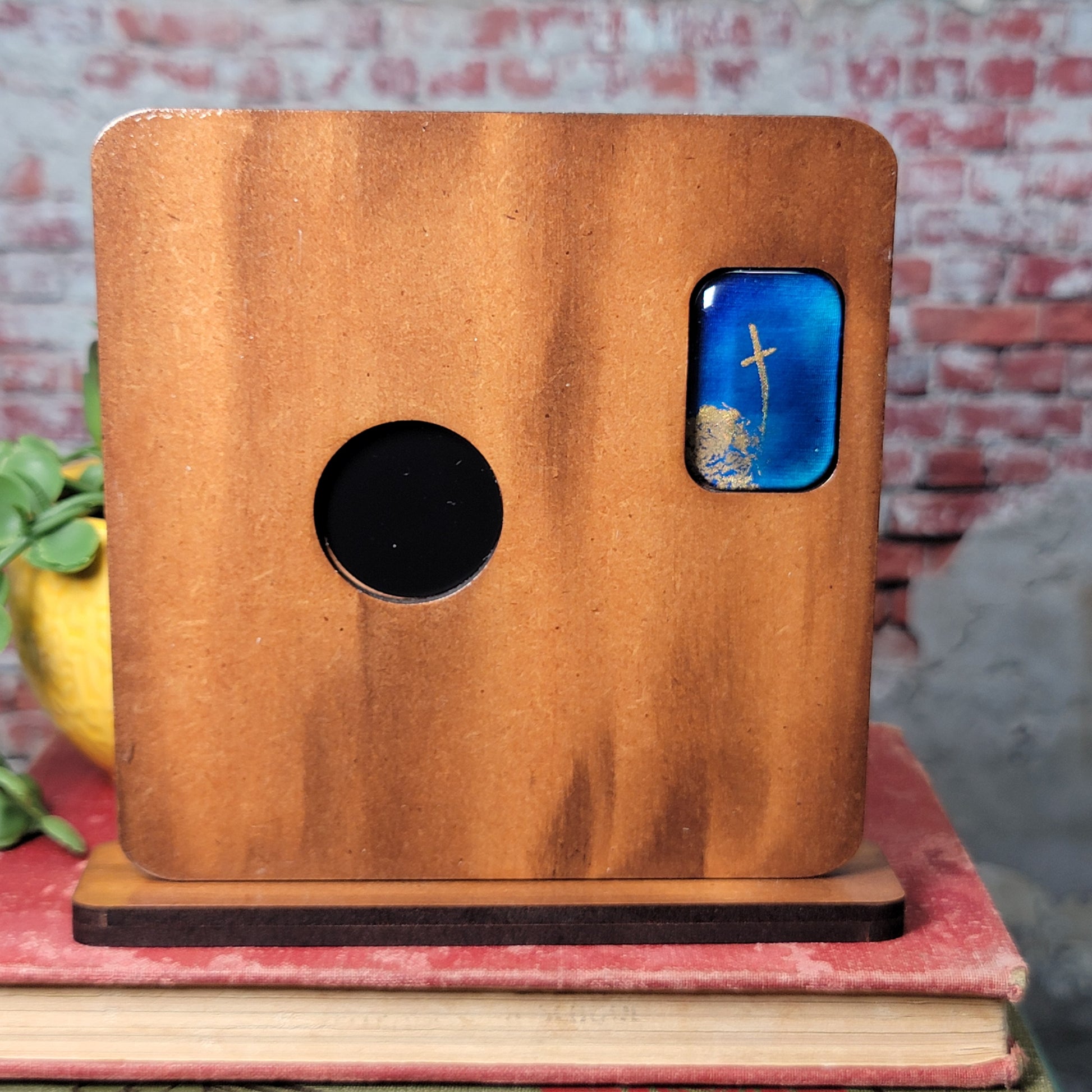 Introducing my custom-created Wood Magnet Frame with a hand-dyed silk gem with a gold metallic cross painted inside it. The frame becomes the ultimate solution for displaying your cherished magnets with style and flexibility. This high-quality frame, available in sleek brown and black finishes, features a unique design that allows you to easily interchange the magnets, making it perfect for showcasing different designs or messages.