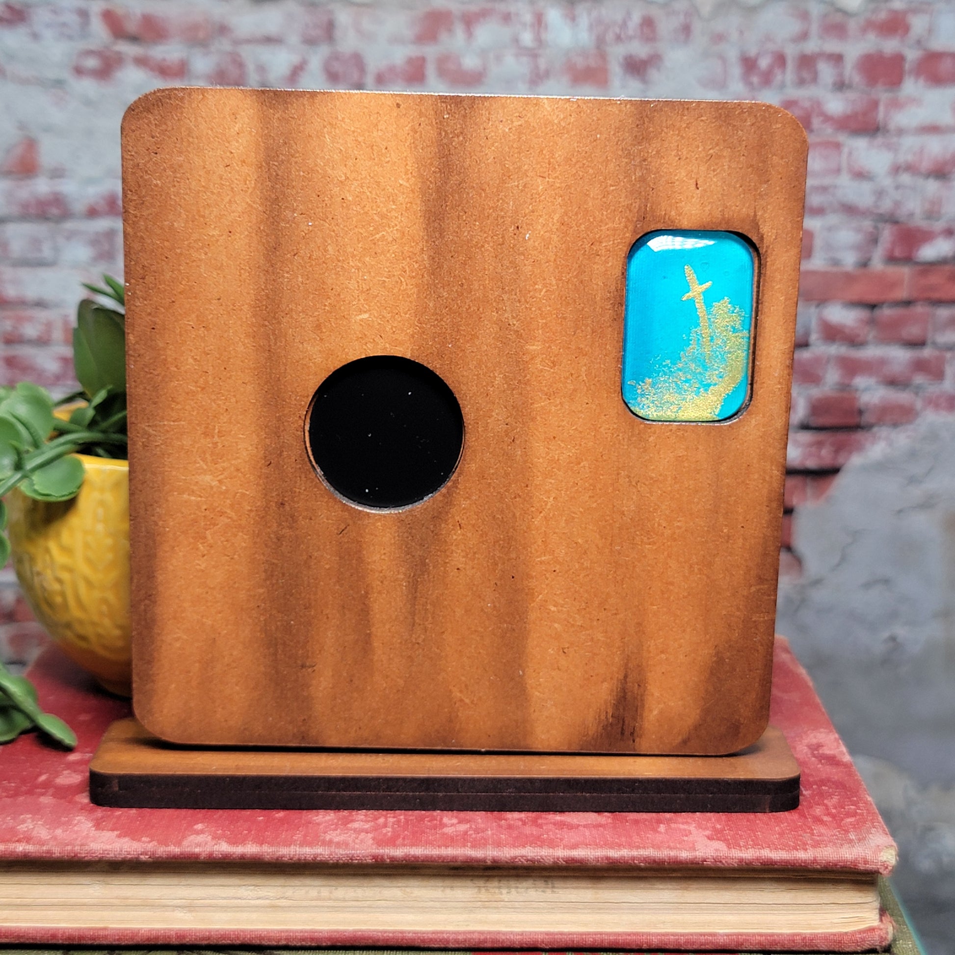 Introducing my custom-created Wood Magnet Frame with a hand-dyed silk gem with a gold metallic cross painted inside it. The frame becomes the ultimate solution for displaying your cherished magnets with style and flexibility. This high-quality frame, available in sleek brown and black finishes, features a unique design that allows you to easily interchange the magnets, making it perfect for showcasing different designs or messages.