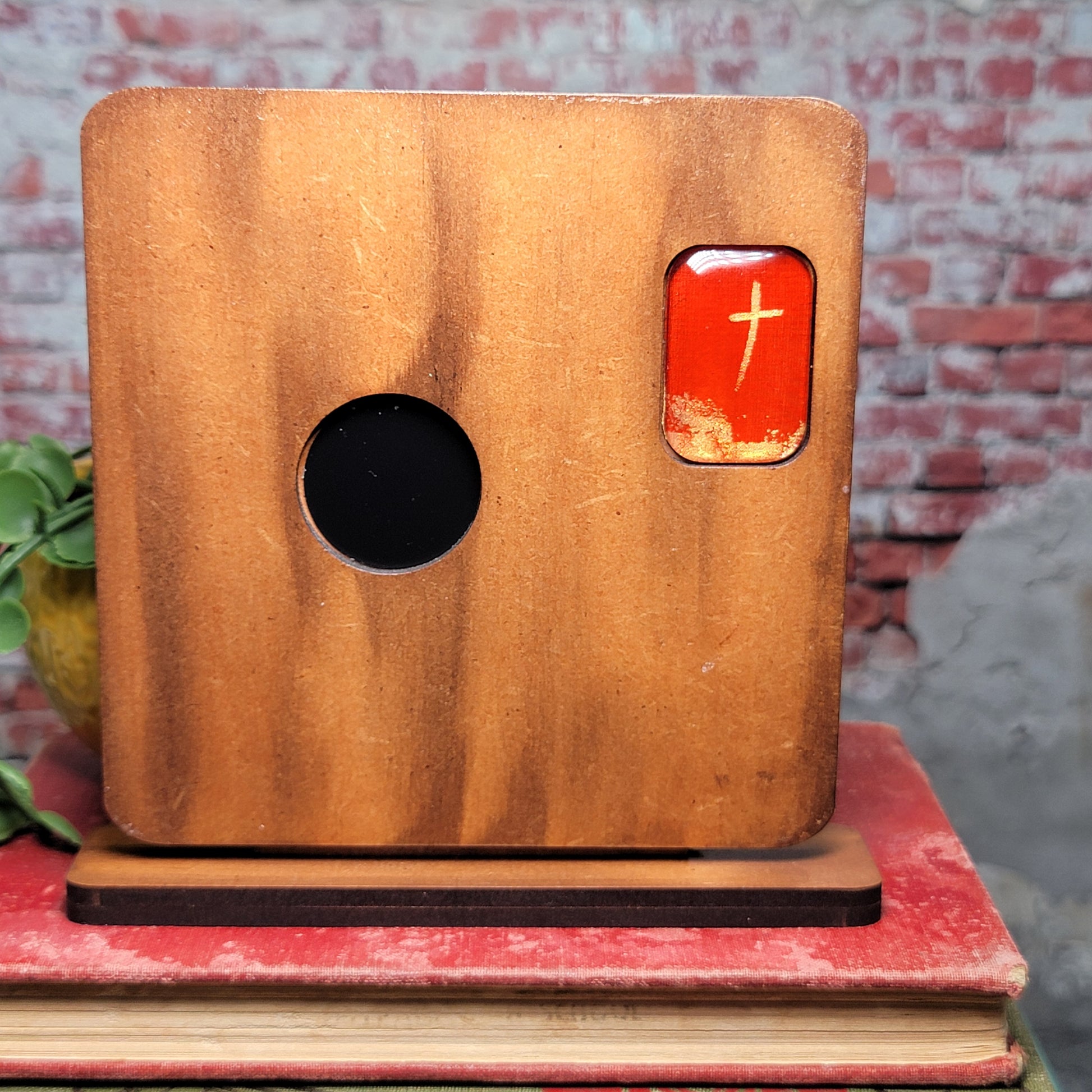 Introducing my custom-created Wood Magnet Frame with a hand-dyed silk gem with a gold metallic cross painted inside it. The frame becomes the ultimate solution for displaying your cherished magnets with style and flexibility. This high-quality frame, available in sleek brown and black finishes, features a unique design that allows you to easily interchange the magnets, making it perfect for showcasing different designs or messages.