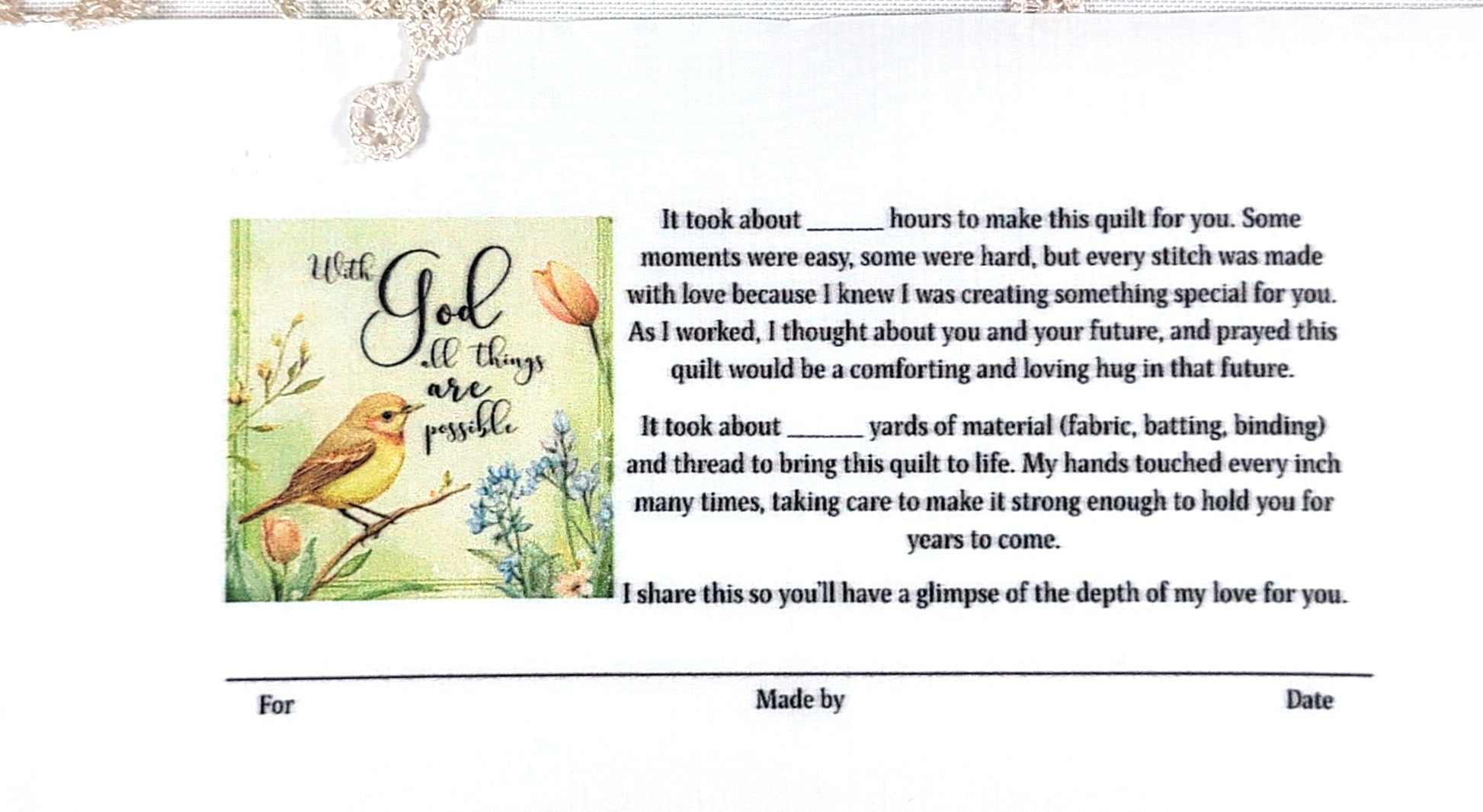 Quilt Label - With God all things are possible